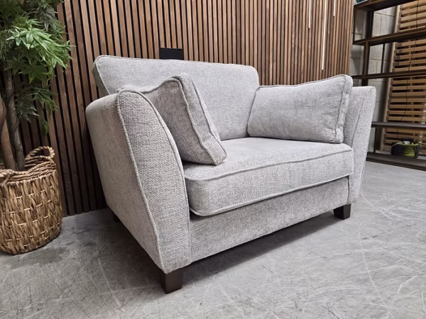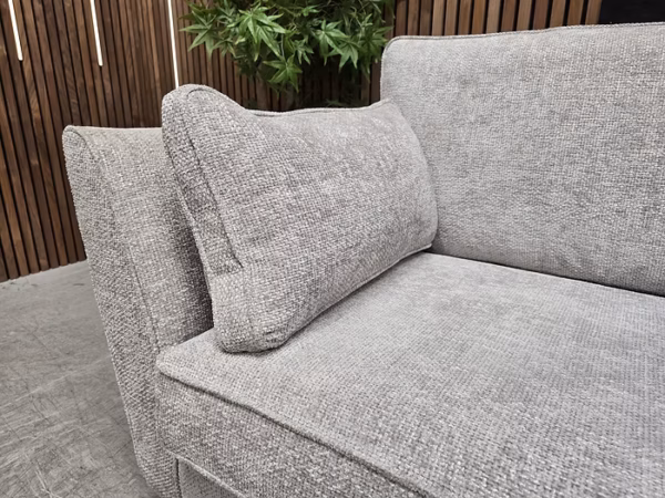 This Snuggler Has Ultra Clean Lines, A Low Profile Stance & Narrow Set Back Arms. With Architectural Black Powder-Coated Steel Legs For a Light, Floating Appearance. Subtle Features Like The Wrap Over Front Seat Pads & Low Backs Give Larch a Laid-Back Modern Aesthetic. Seat Cushions Are Composed With a Feather-Topper For a Super-Comfortable Sit.