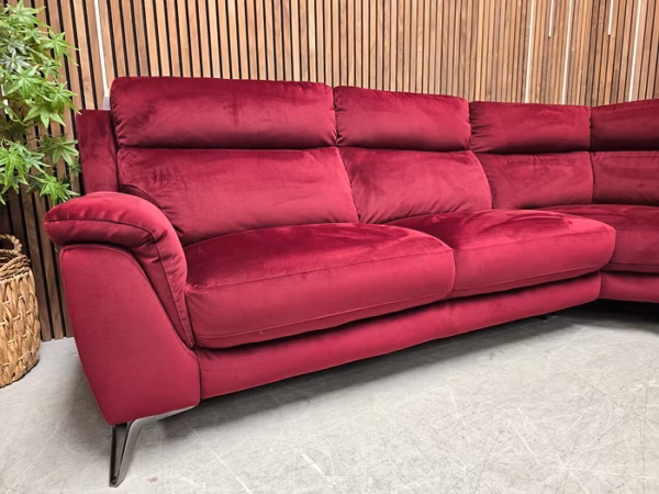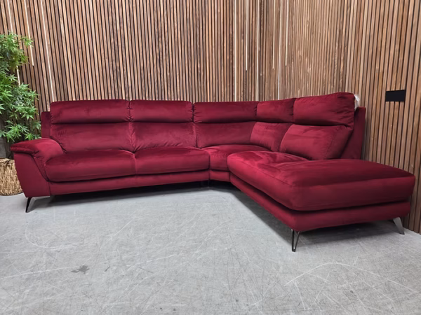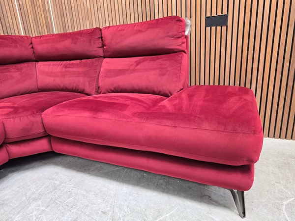 FV Contempo RHF Corner Chaise Sofa In Burgundy Velvet RRP-£2295
