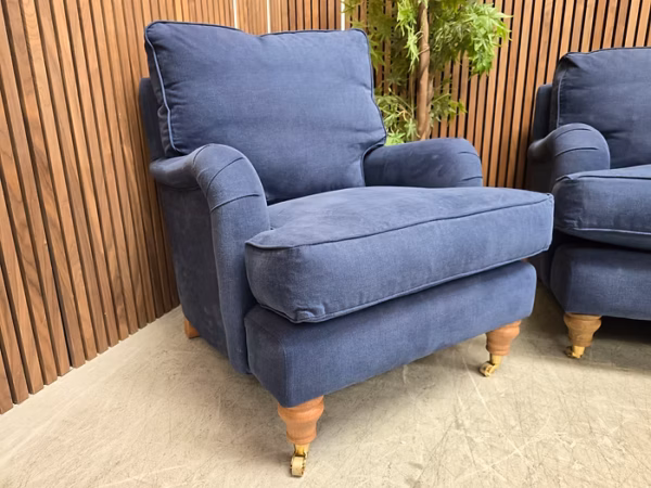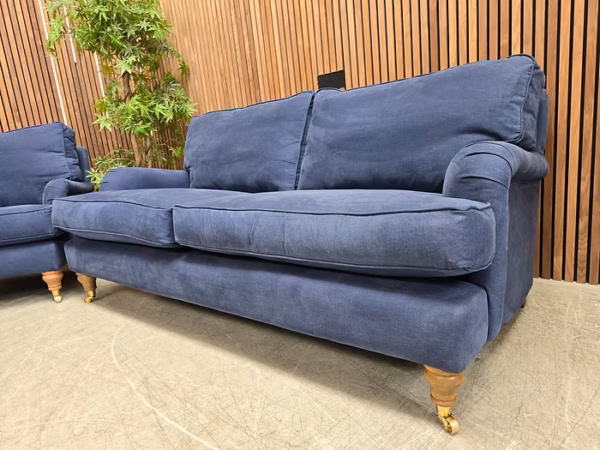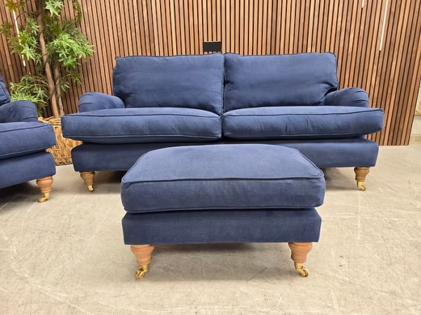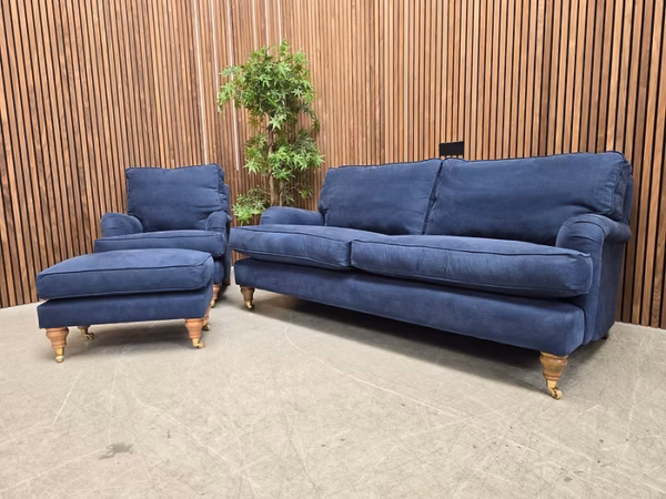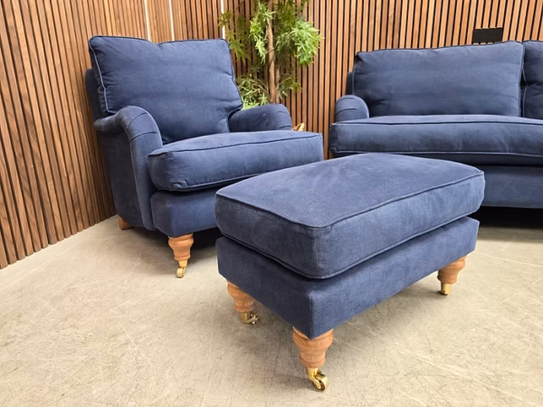 Sofa.com Bluebell 2.5 Seater Sofa, Small Armchair & Footstool In Washed Indigo Easy Cotton RRP-£2940