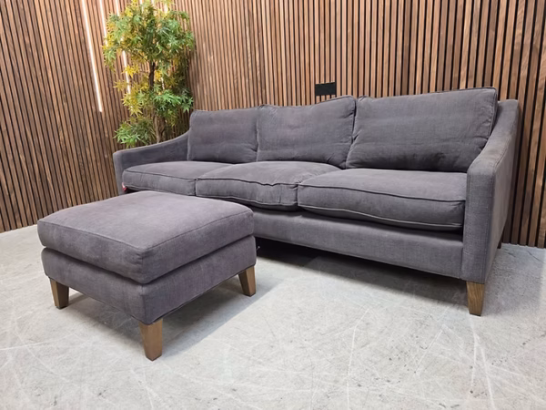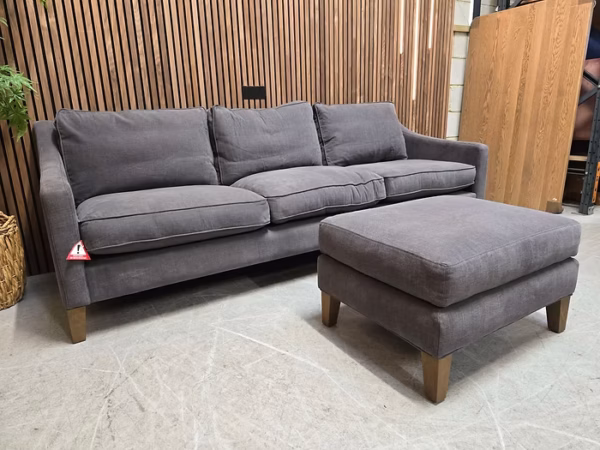 Sofa.com Iggy 4 Seater Sofa & Footstool In Charcoal Brushed Linen Cotton RRP-£3070