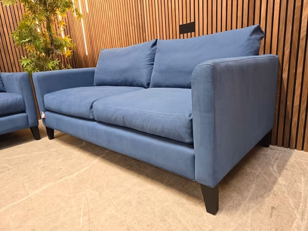 Sofa.com Izzy 2.5 Seater Sofa & Footstool In Heather Blue Smart Cotton RRP-£2490