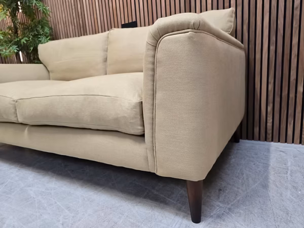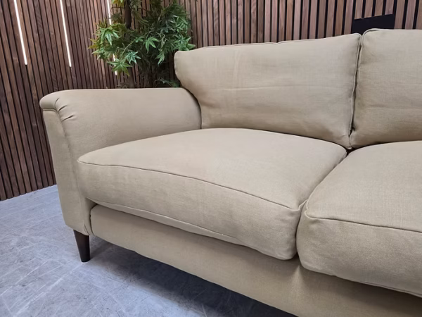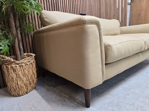 Soho Reya Mid Century Modern Small Sofa In Linen Wheat RRP-£3795