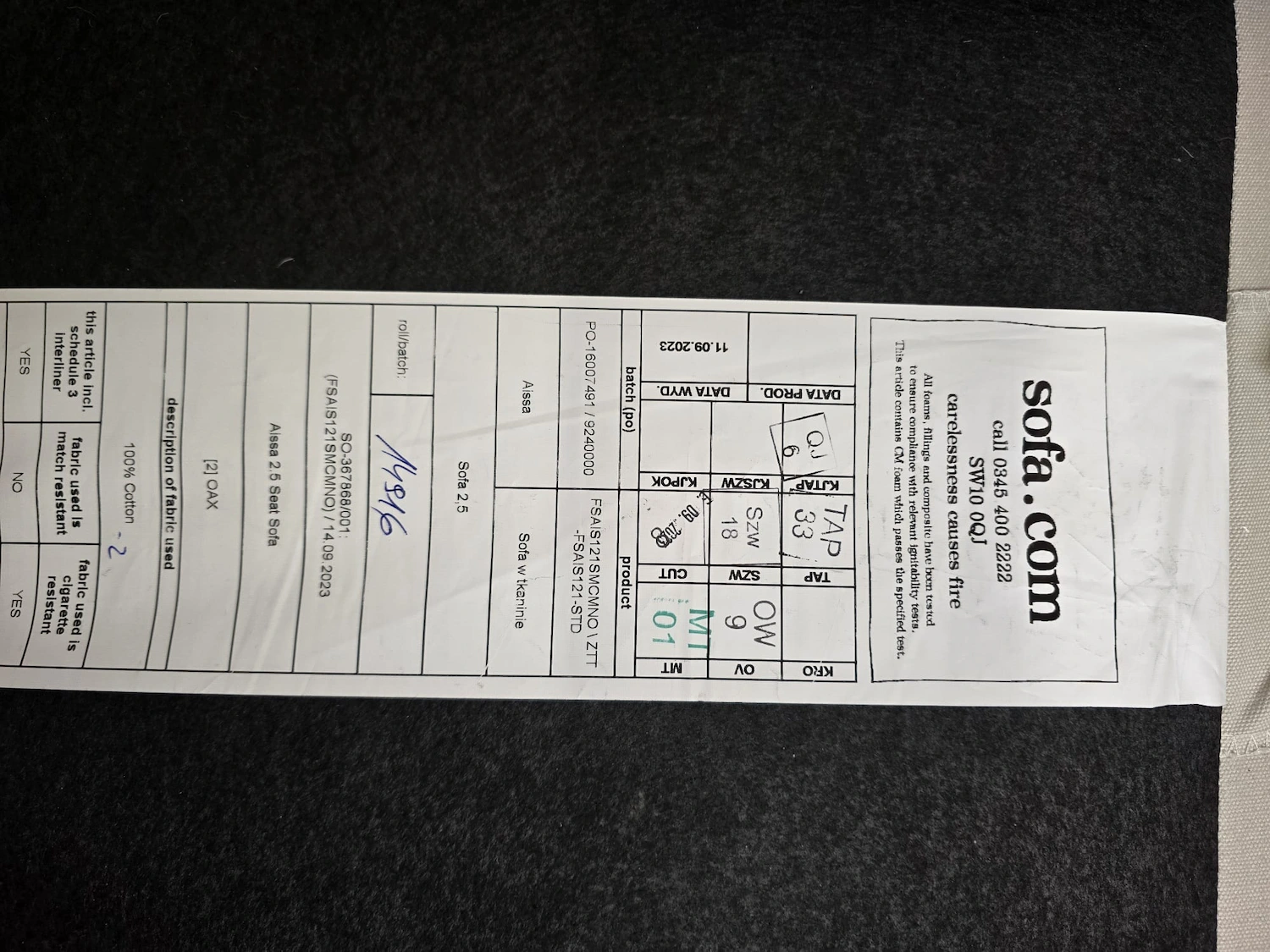 Sofa.com Aissa 2.5 Seater Sofa In Moon Smart Cotton RRP-£1980