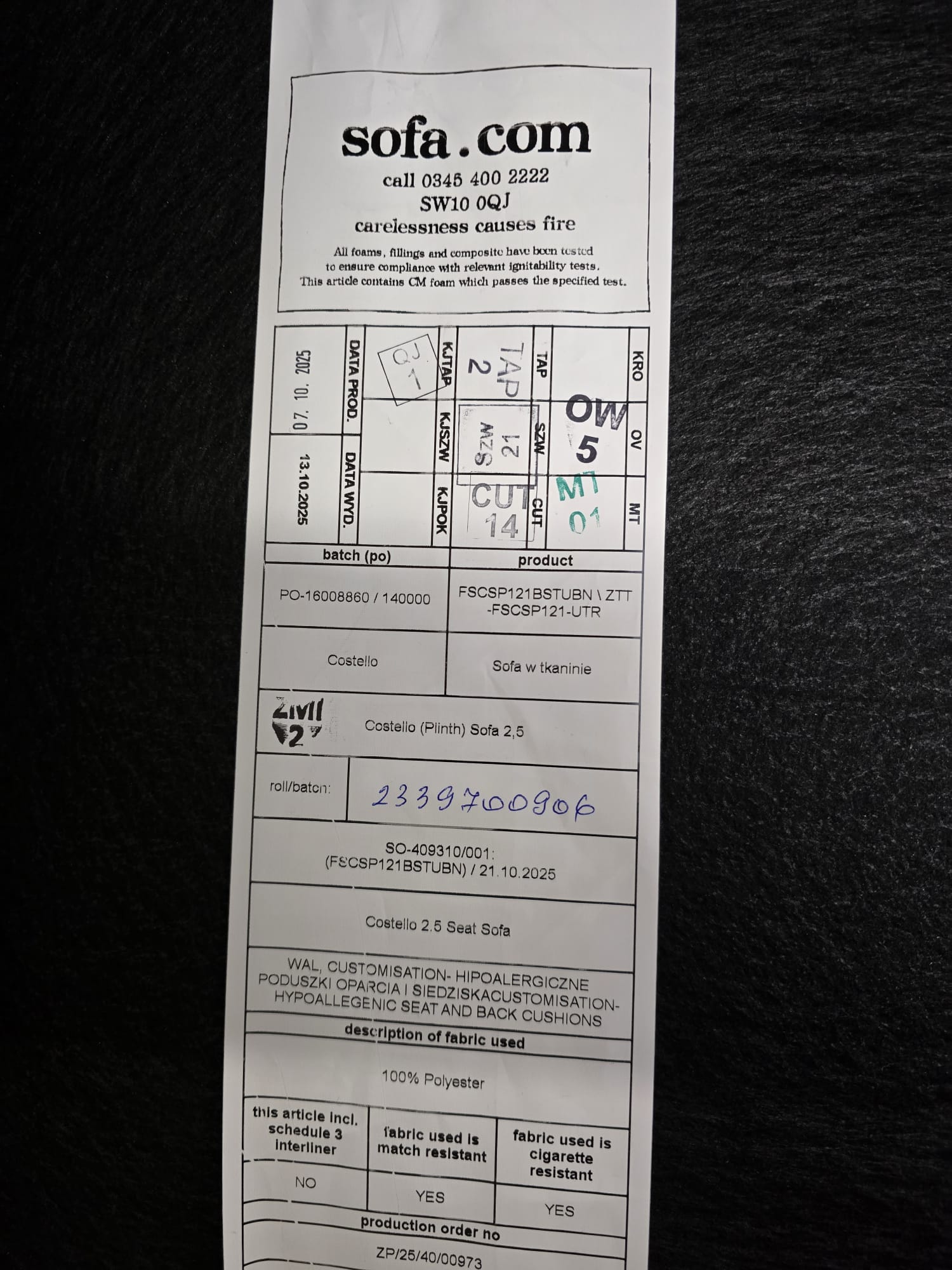 Sofa.com Costello 2.5 Seater Sofa In Urban Nature Brushstroke Removable Arms RRP-£1660