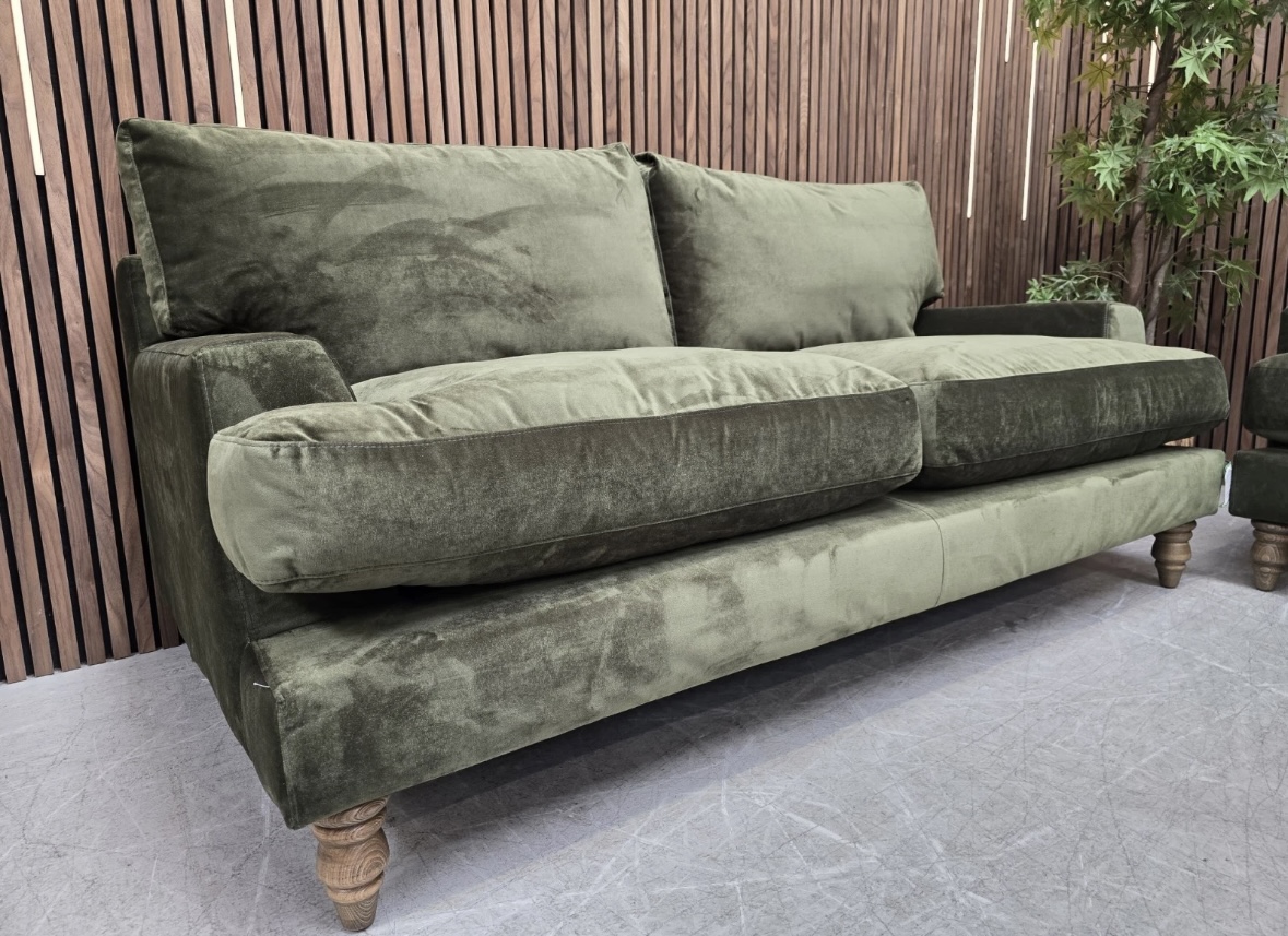 Sofa.com Holly 3 Seater Sofa In Olive Cotton Matt Velvet RRP-£1950