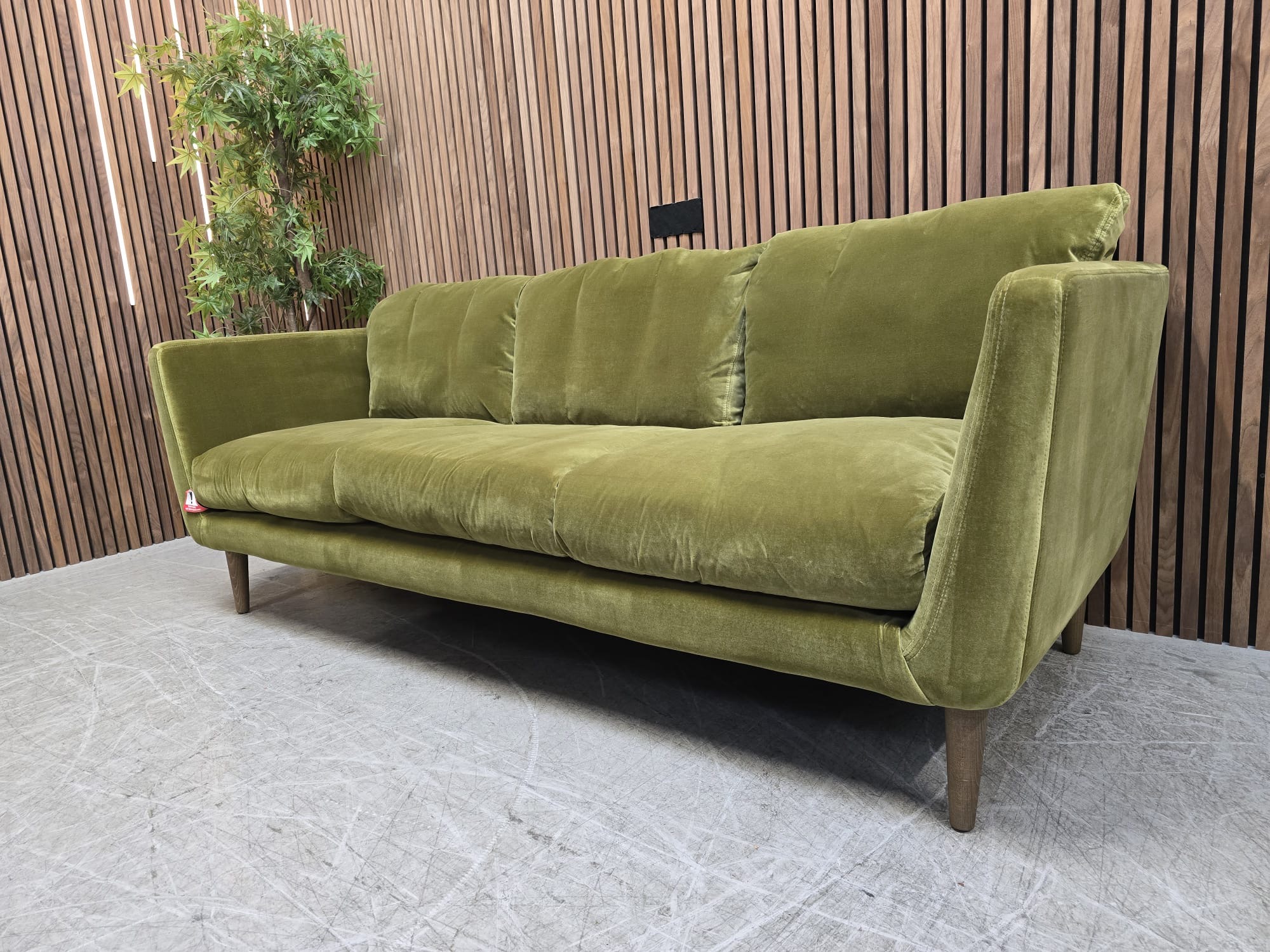 Sofa.com Holly 3 Seater Sofa In Olive Cotton Matt Velvet RRP-£1950