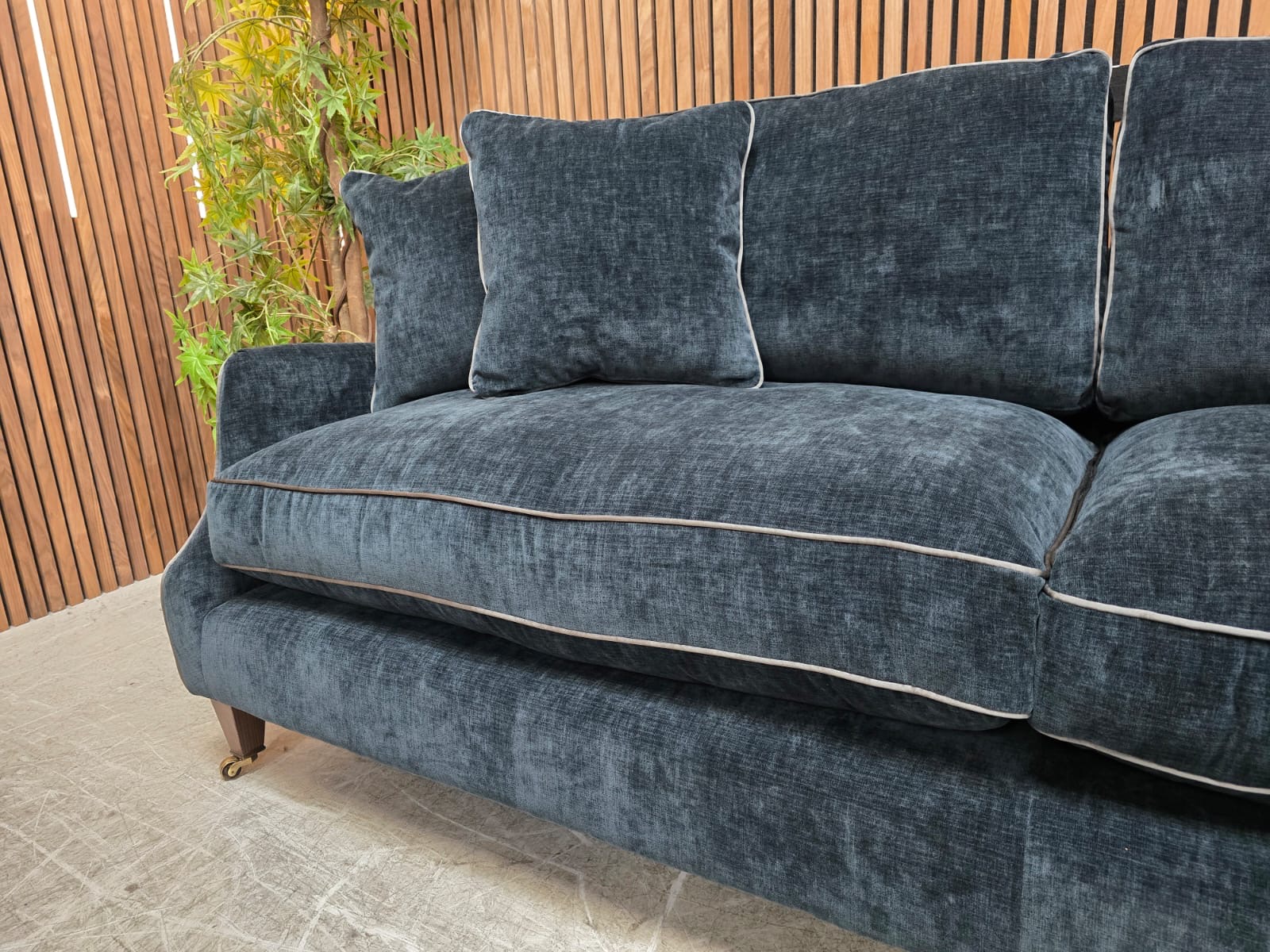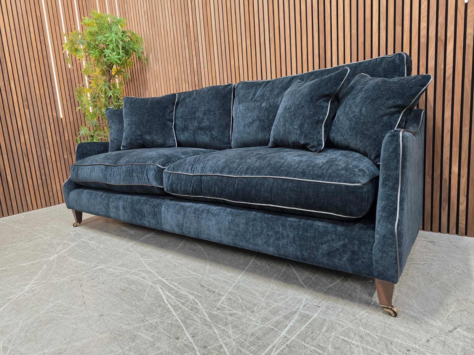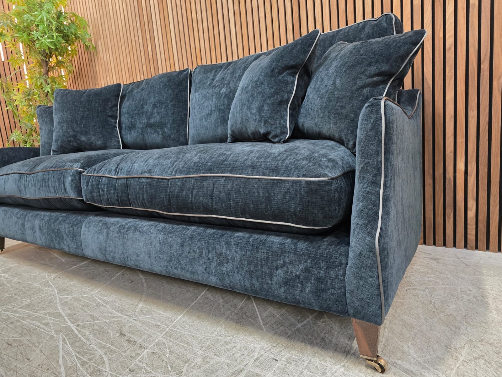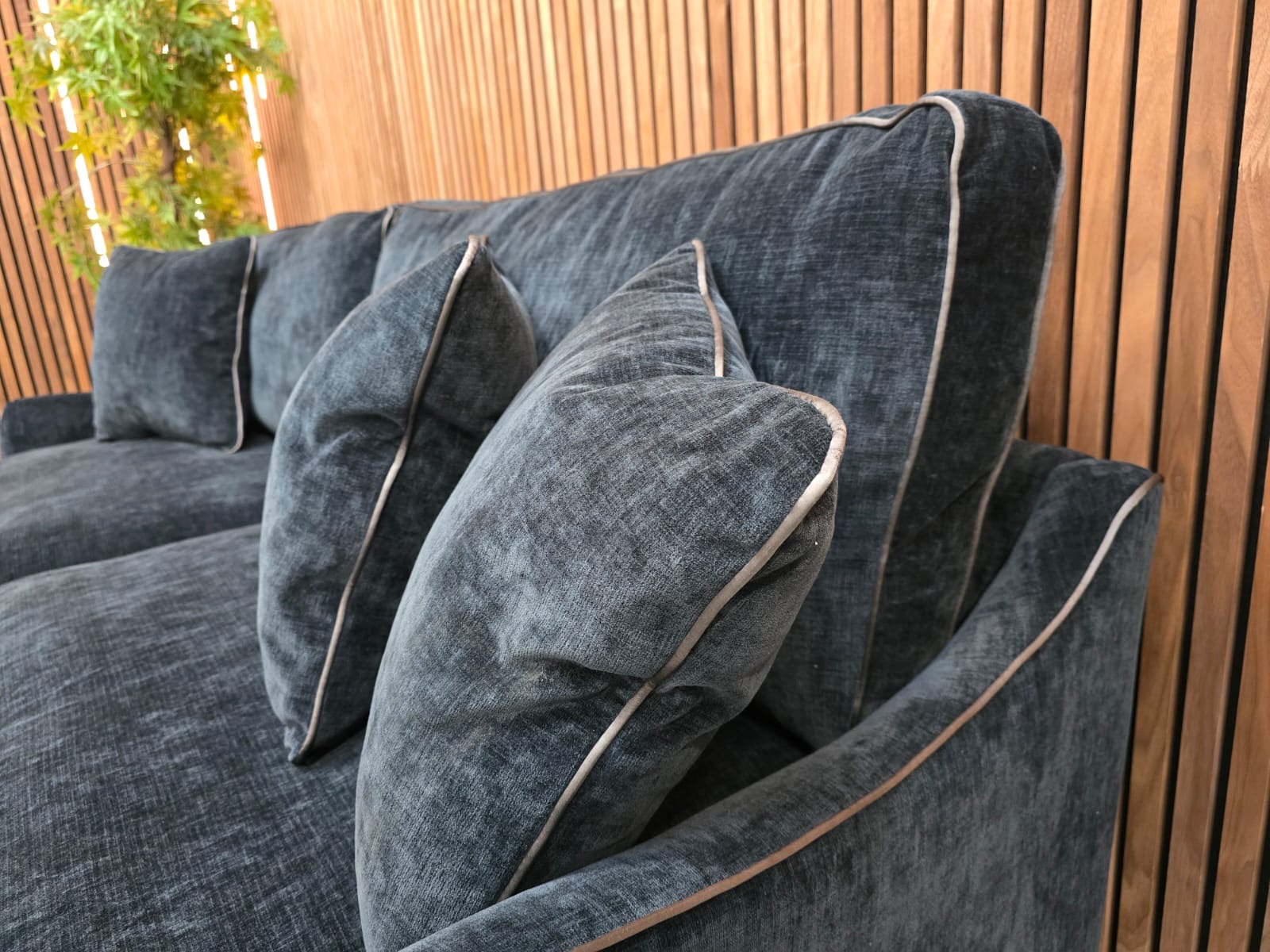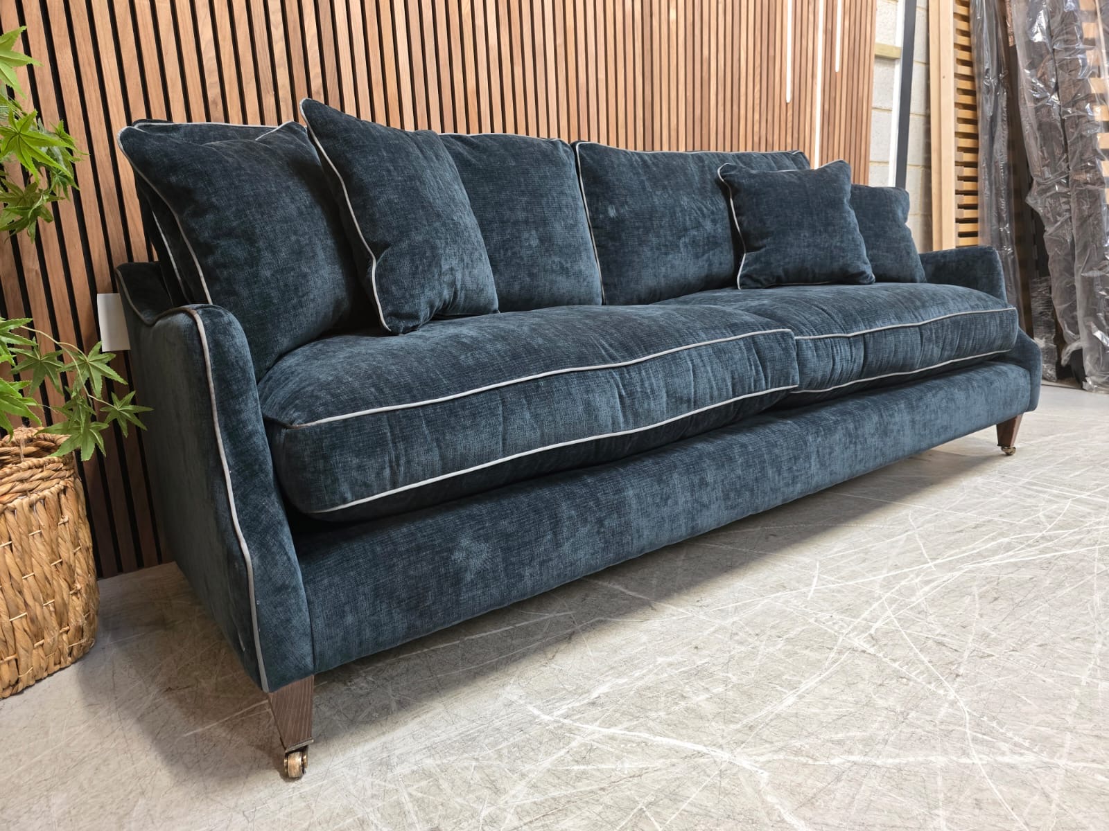 Blending Timeless Elegance With Impressive Comfort, The Quarry Chenille Extra Large 4 Seater Sofa Is A Standout Piece For Any Living space. Its cut-back arm design is beautifully highlighted by sateen piping, Covered In Distressed Chenille Fabric With A Velvety Finish And Rich Tonal Variations, It Exudes Luxury. Featuring Elegant Legs With An Option For Castors, This Generously Sized Sofa Offers Both Sophistication And Sample Seating For Larger Rooms.