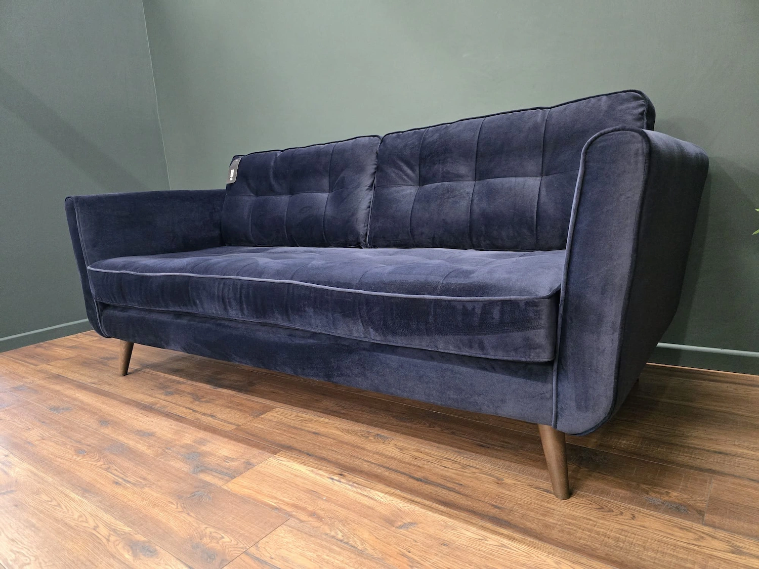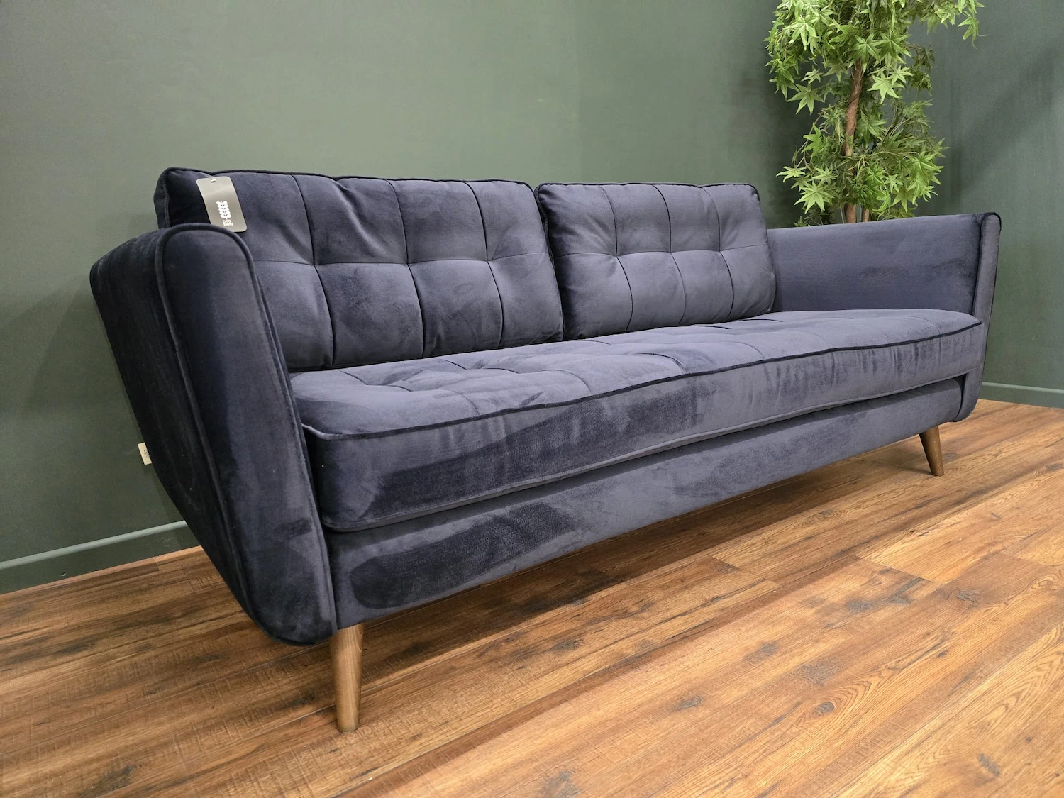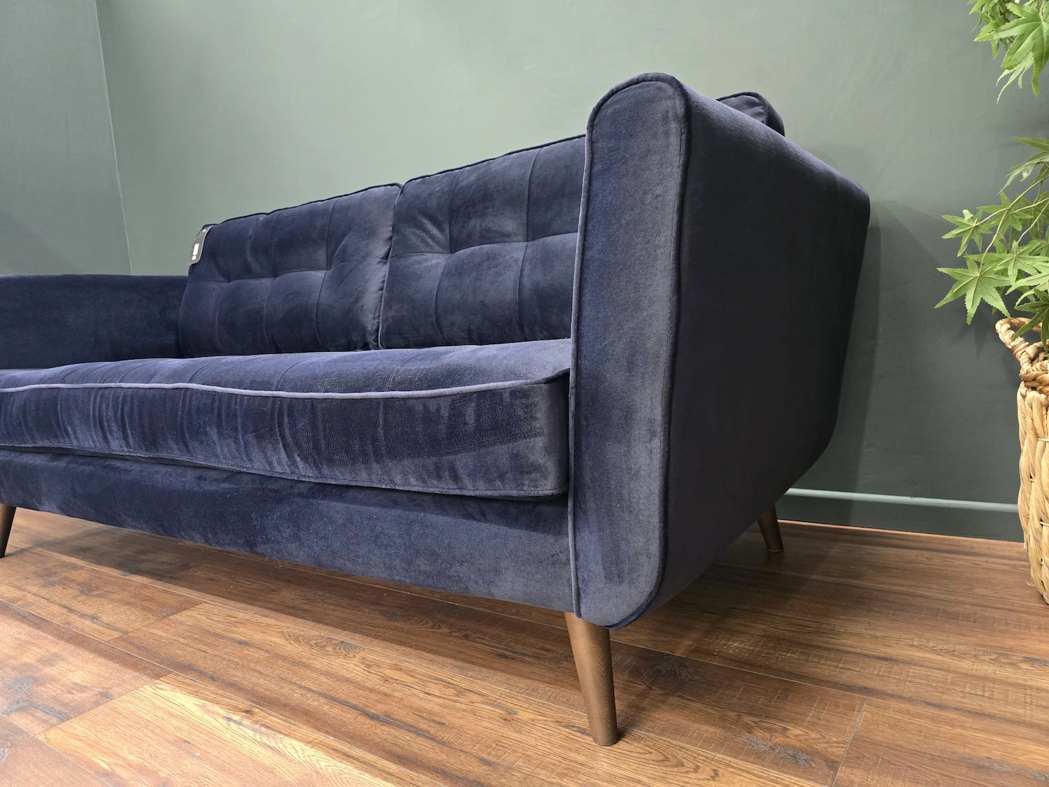 Designer Label Retro Modern Large Sofa In Indigo Blue RRP-£1599