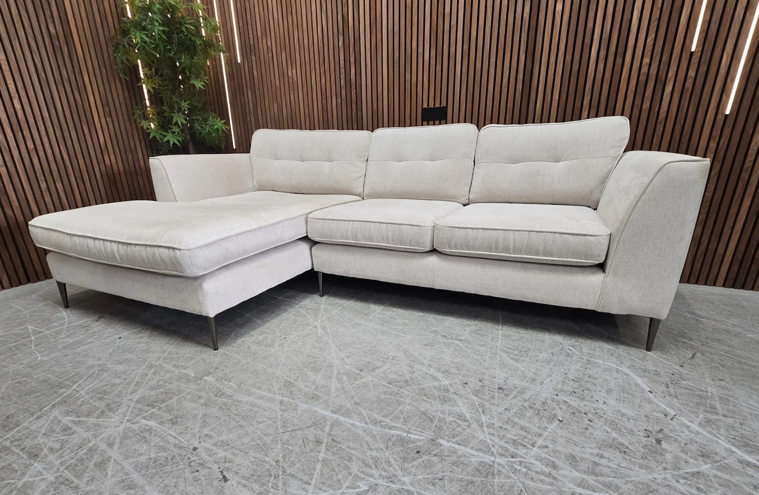 Designer Label LHF Retro Modern Chaise Sofa In Natural RRP-£2249