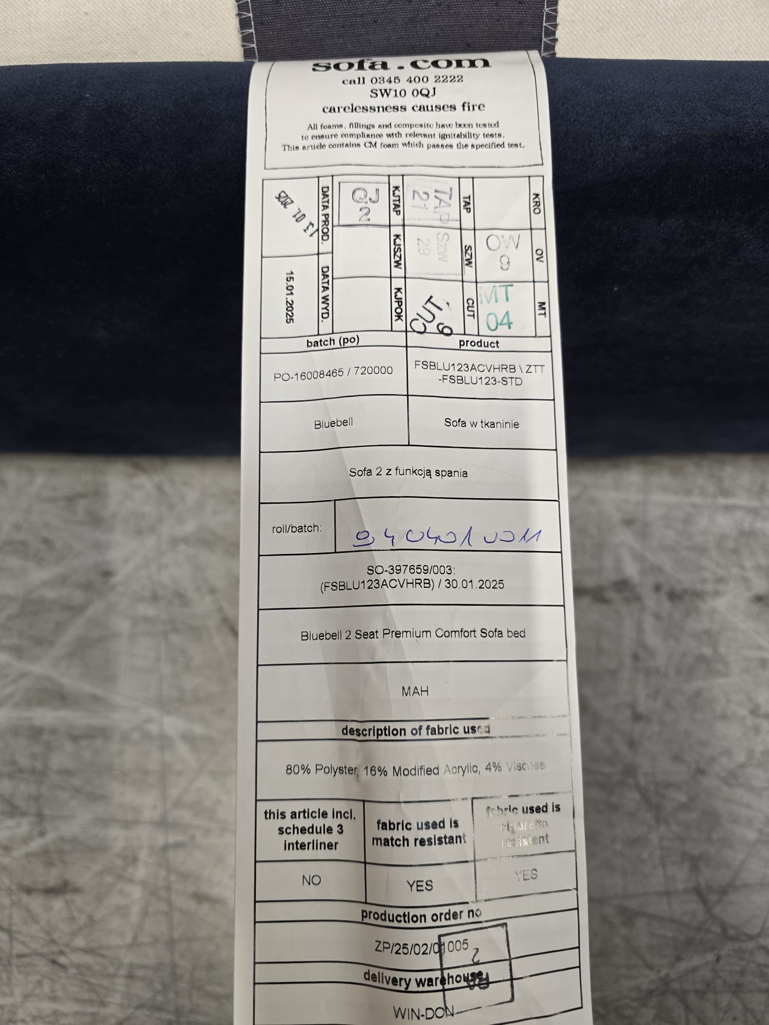 Sofa.com Bluebell 2 Seater Premium Comfort Sofa Bed In Harbour Aquaclean Clever Velvet RRP-£3040