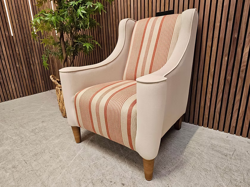 Sofas & Stuff Sennen Regency Armchair In Cream Velvet & Mulberry Stripe Linen